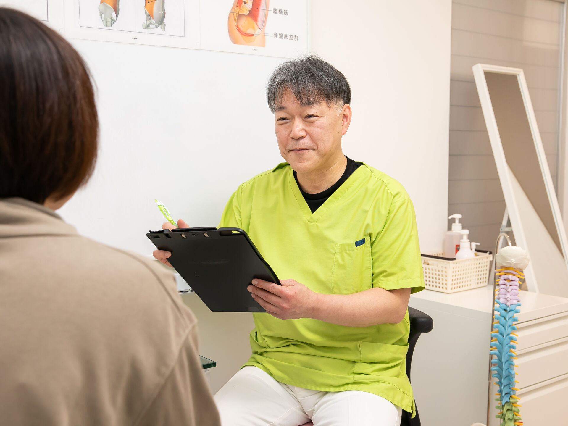 お話ししやすい個室で、カウンセリング・姿勢写真・姿勢検査を行い、患者様のお悩み、目標にアプローチします。