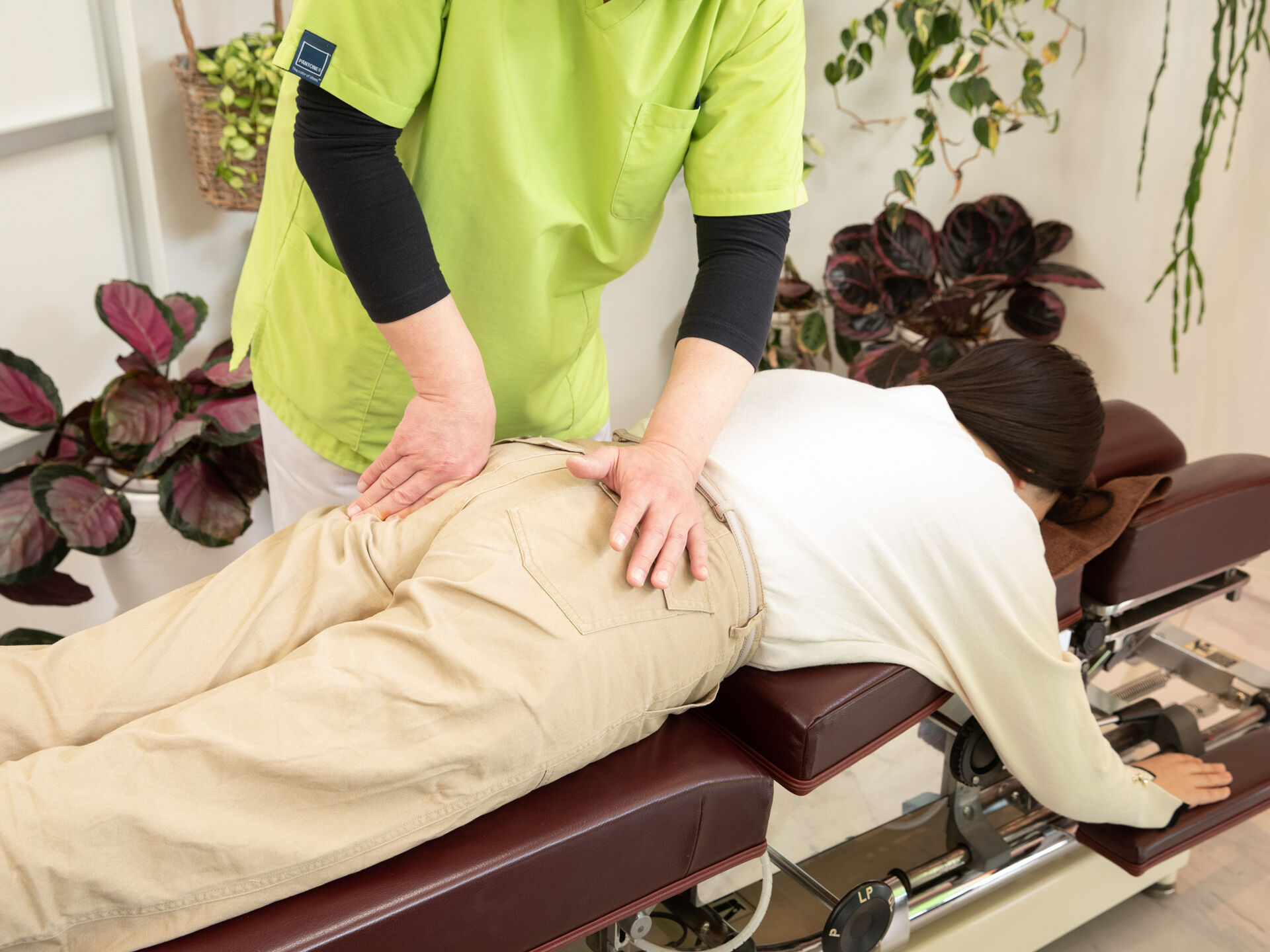 全身の骨格調整・骨盤調整で、お体のバランスを整え、重心の位置を整えます。ゼニス製のトムソンベッドを使用します。