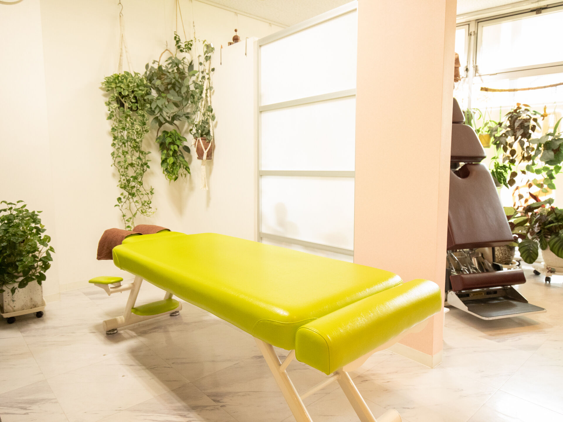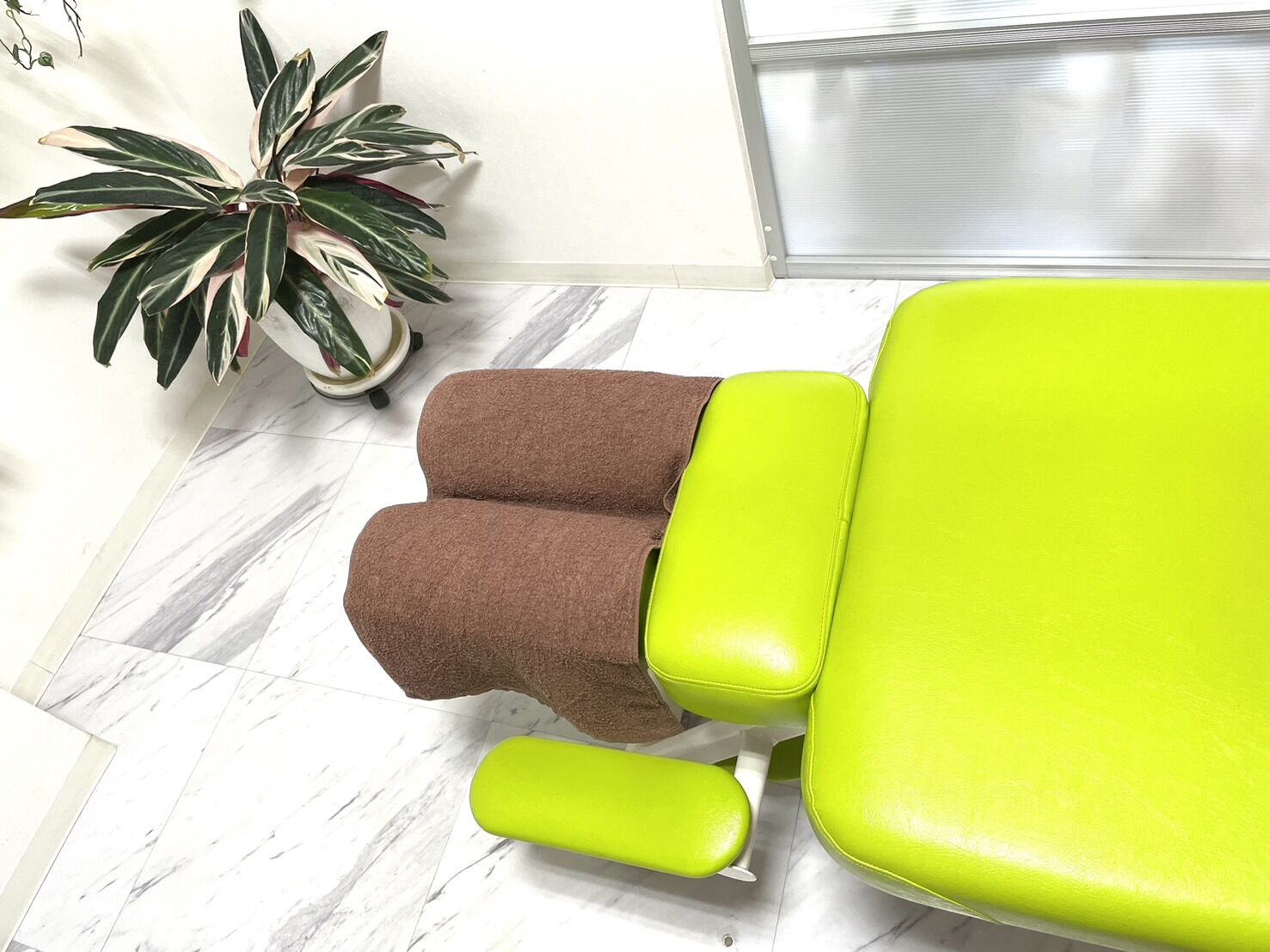 施術の効果が上がり、お客様のお身体に無駄な力が入らない施術専用ベッドを使用しております。